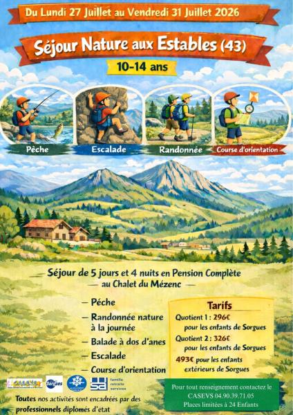 Le C.A.S.E.V.S. (Centre d’Animation Socio-Educative de la ville de Sorgues) accueille les enfants âgés de 3 à 17 ans toute l'année, les mercredis et pendant les vacances scolaires. L'équipe pédagogique d'animation propose des activités éducatives adaptées permettant aux enfants de découvrir tour à tour des activités manuelles, physiques, d'expression mais aussi de participer à des sorties diverses, des spectacles...