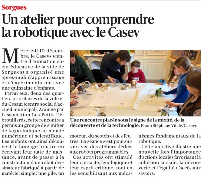 un atelier pour comprendre la robotique avec le CASEVS